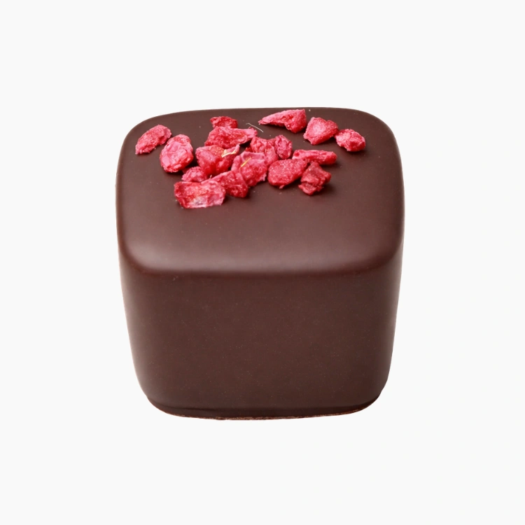 vit choklad 14% (socker, kakaosmör*, helmjölkpulver, sojalecitin, arom); glukossirap, solrosolja, palmfett, hallonpuré, hallon; konentrerat smör, vatten, grädde (mjölk);
