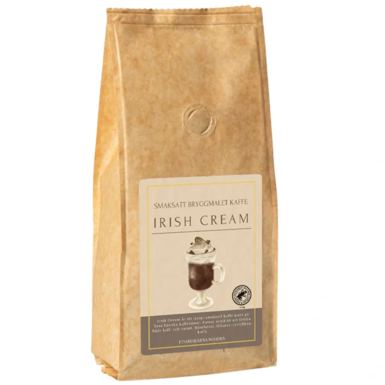 Smaksatt bryggkaffe. Irish cream är ett lyxigt kaffe gjort på brasilianska kaffebönor. Tips är att brygga Irish cream och blanda med varm, vispad mjölk och vispgrädde!